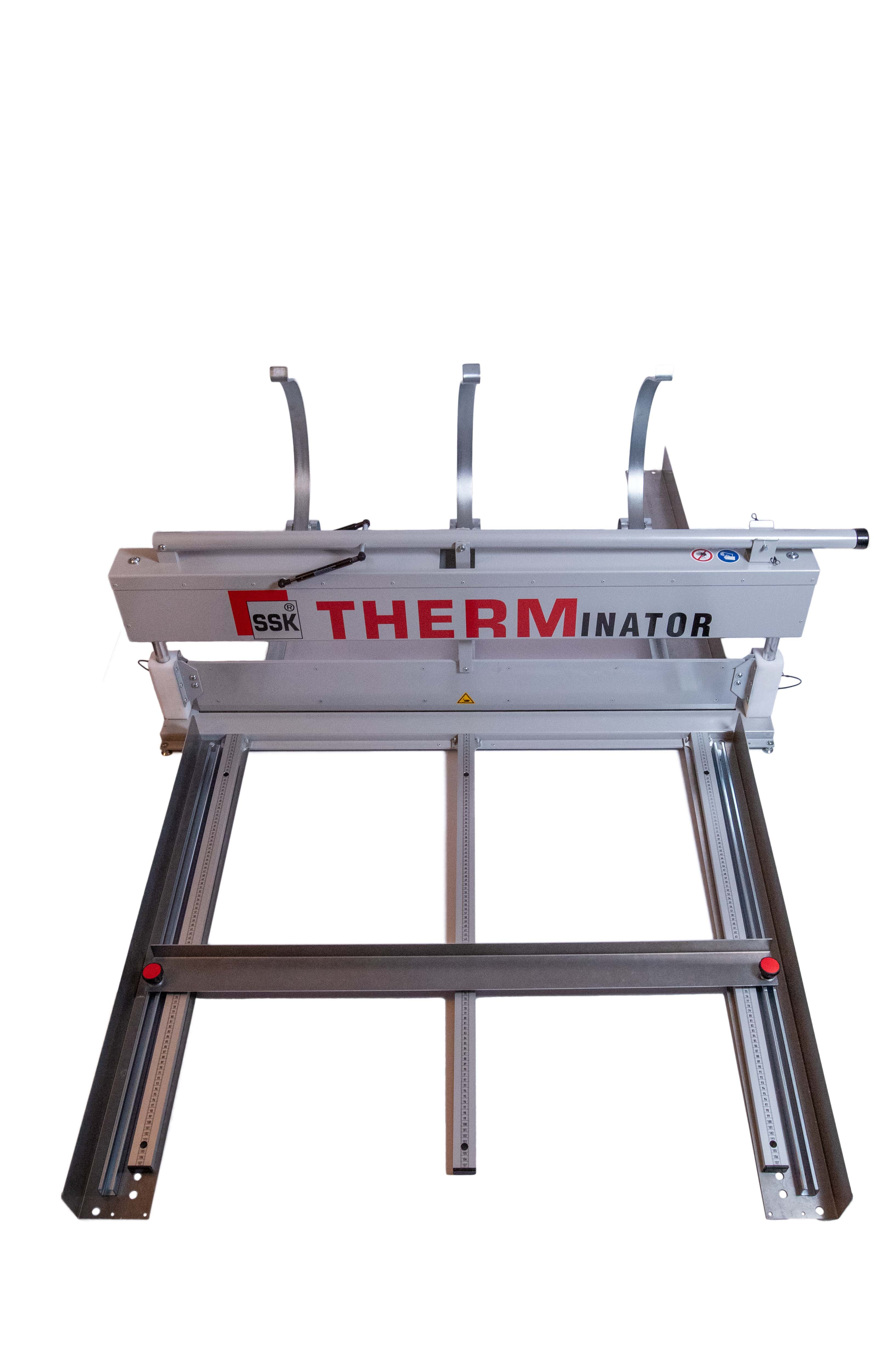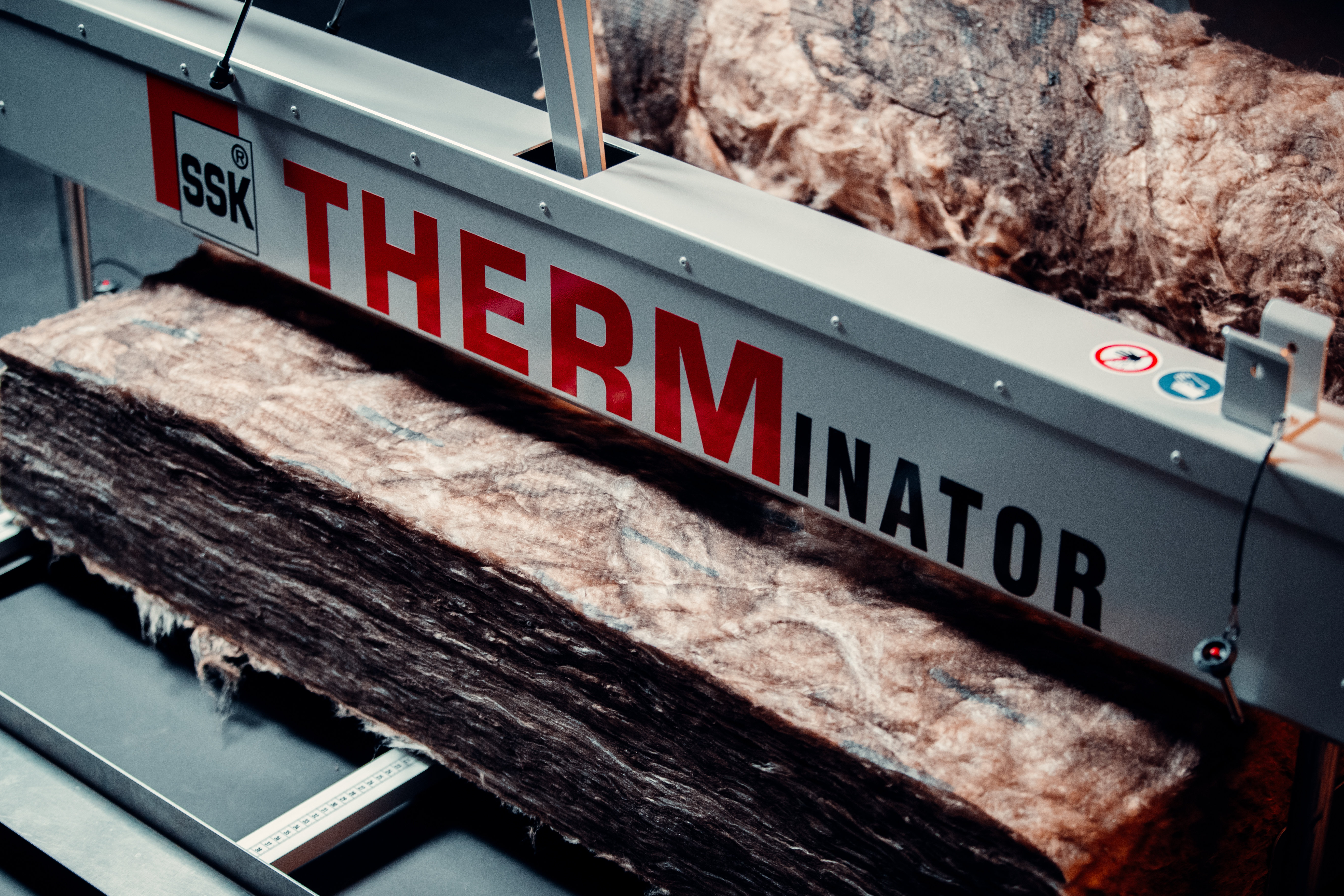 De Therminator isolatiesnijmachine is een professionele oplossing voor glas- en steenwol tot 250 mm dik en 1300 mm breed. Ontwikkeld voor snelle, nauwkeurige snedes met minimale stofvorming en een ergonomische werkhouding – minder belasting aan armen, polsen en handen.